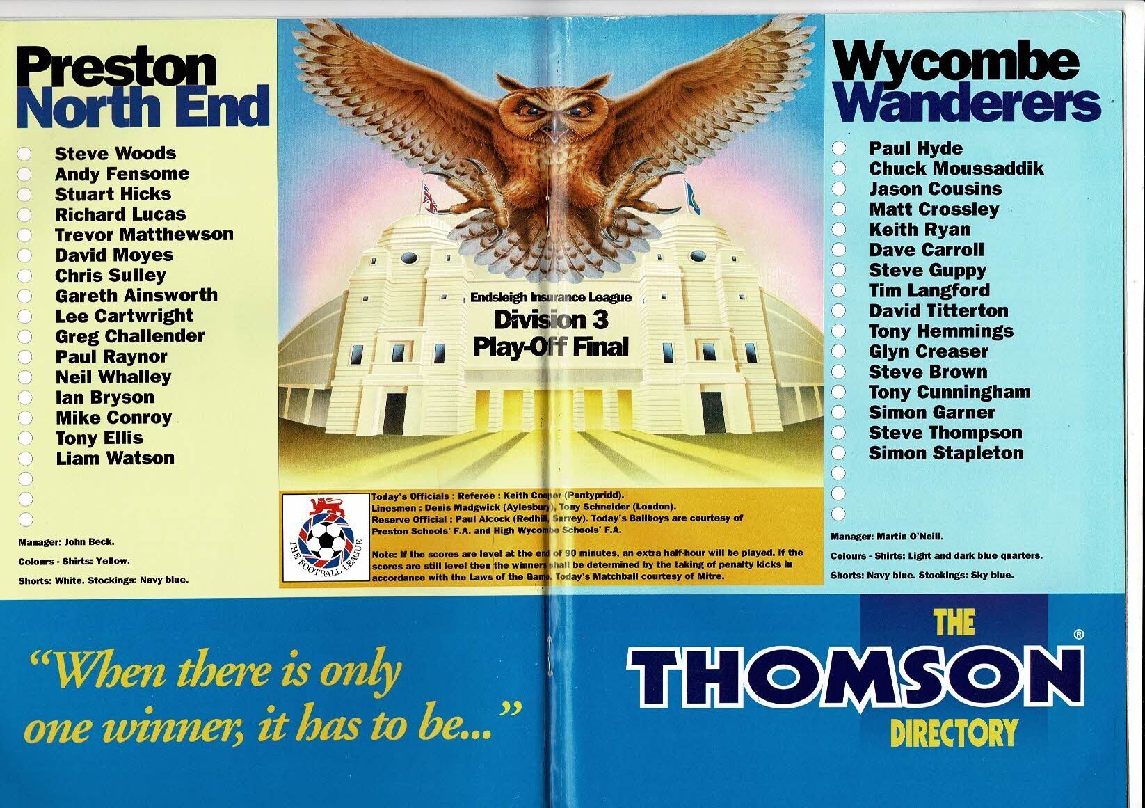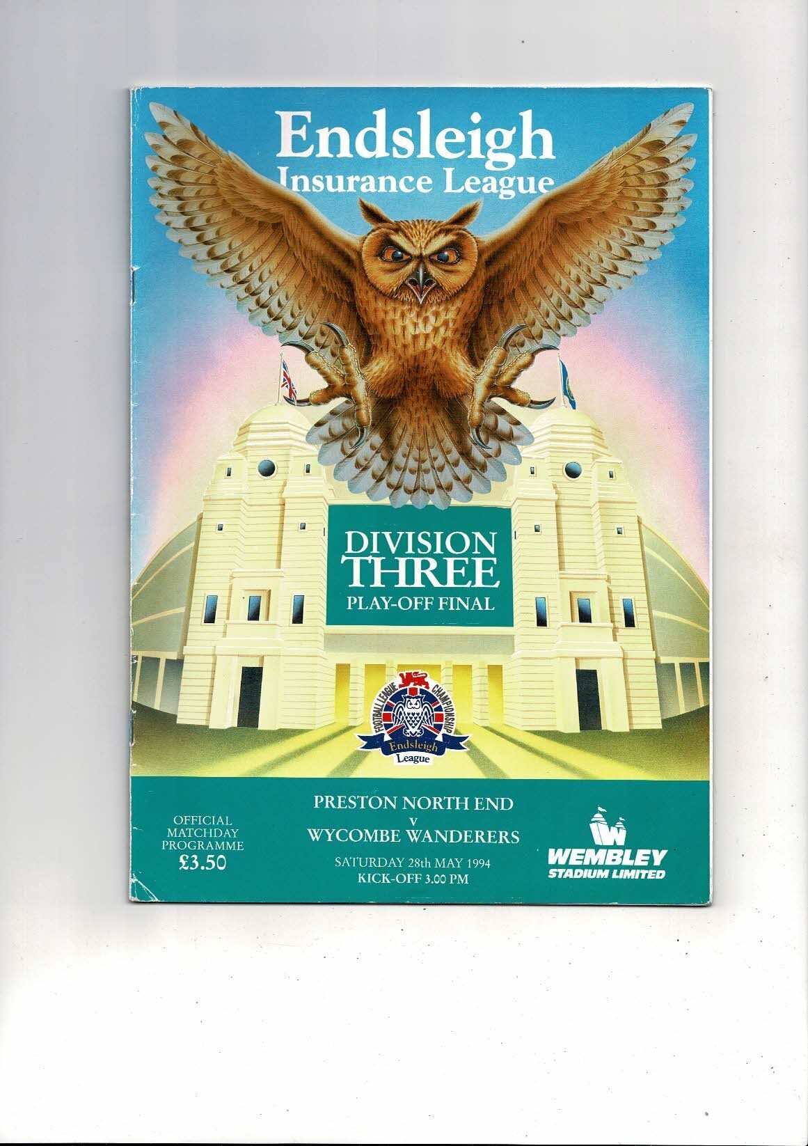 1994 Preston v Wycombe Wanderers Play Off Final Div 3 Football Programme