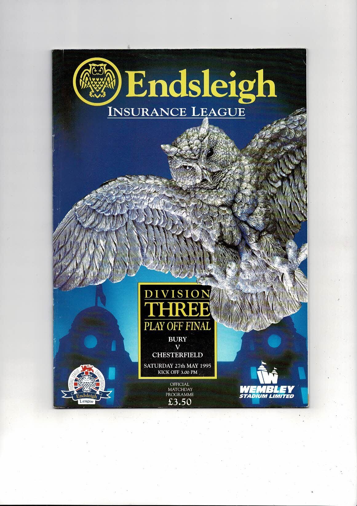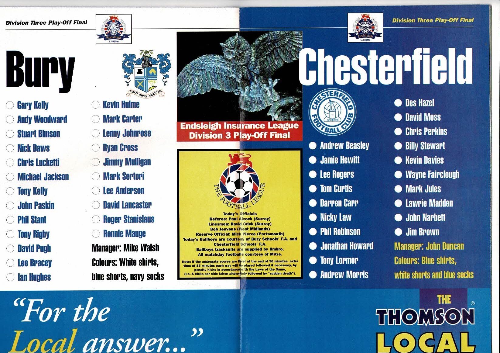 1995 Bury v Chesterfield Play Off Final Div 3 Football Programme + Press Cutting