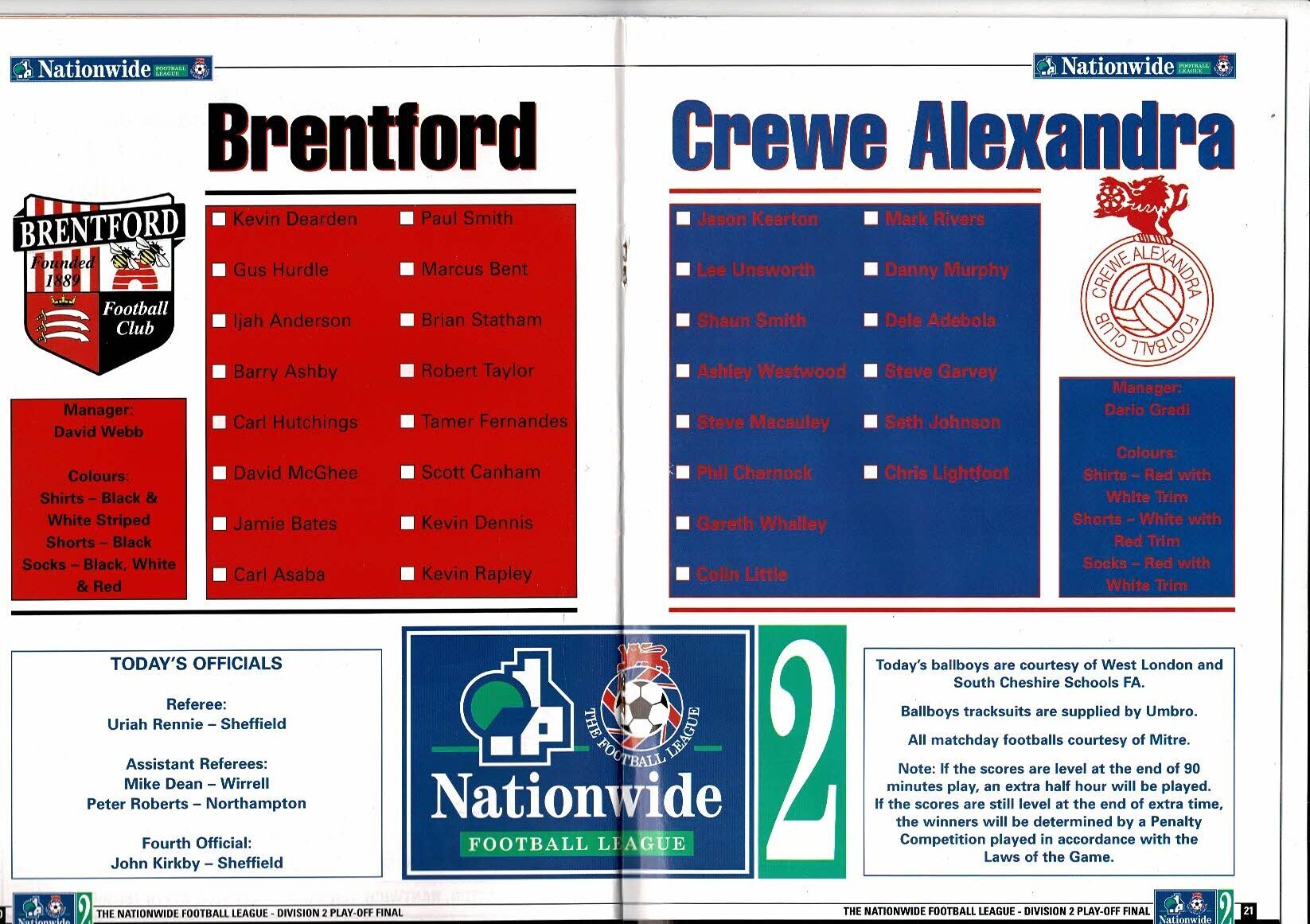1997 Brentford v Crewe Alexandra Play Off Final Div 2 Football Programme