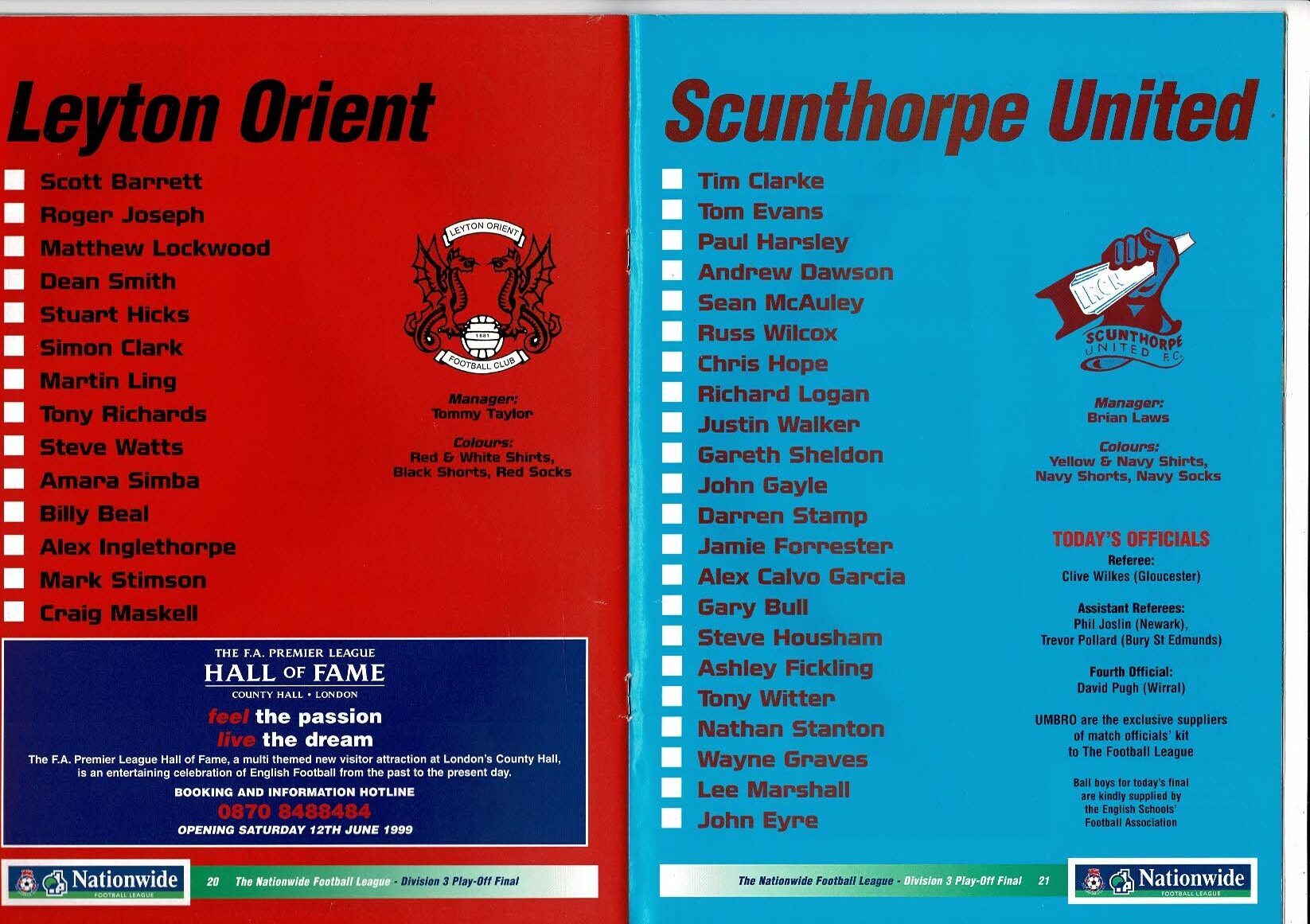1999 Leyton Orient v Scunthorpe United Play Off Final Div 3 Football Programme + Press cutting