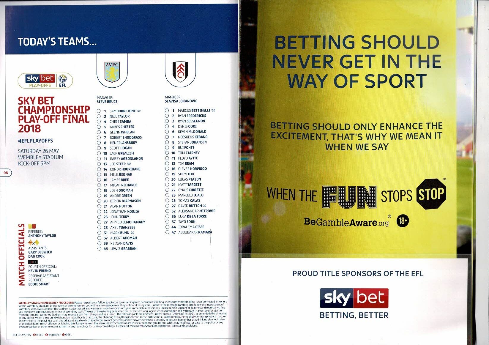 2018 Aston Villa v Fulham Play Off Final Championship Football Programme