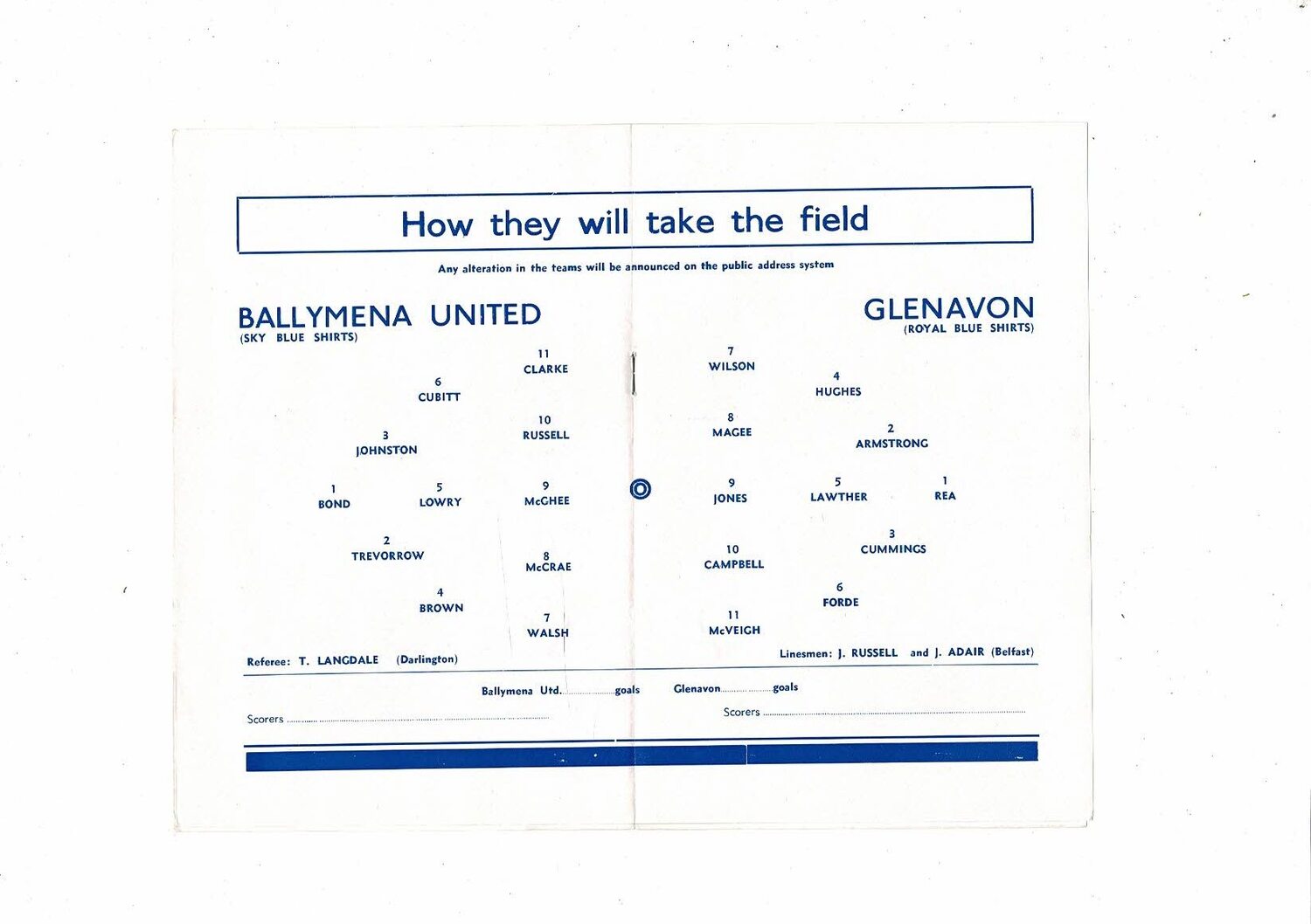 1959 Ballymena United v Glenavon Irish Cup Final Replay Football Programme