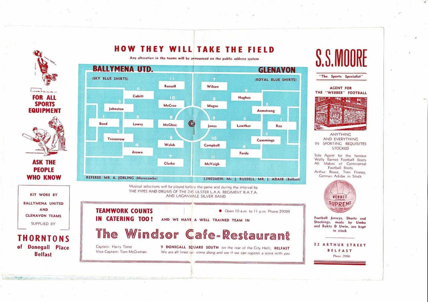 1959 Glenavon v Ballymena United Irish Cup Final Football Programme