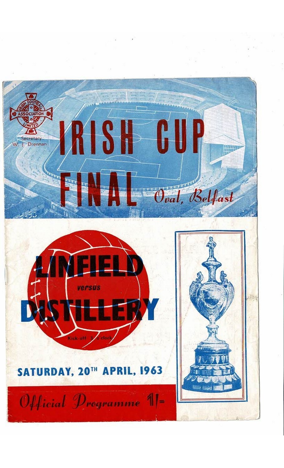 1963 Linfield v Distillery Irish Cup Final Football Programme