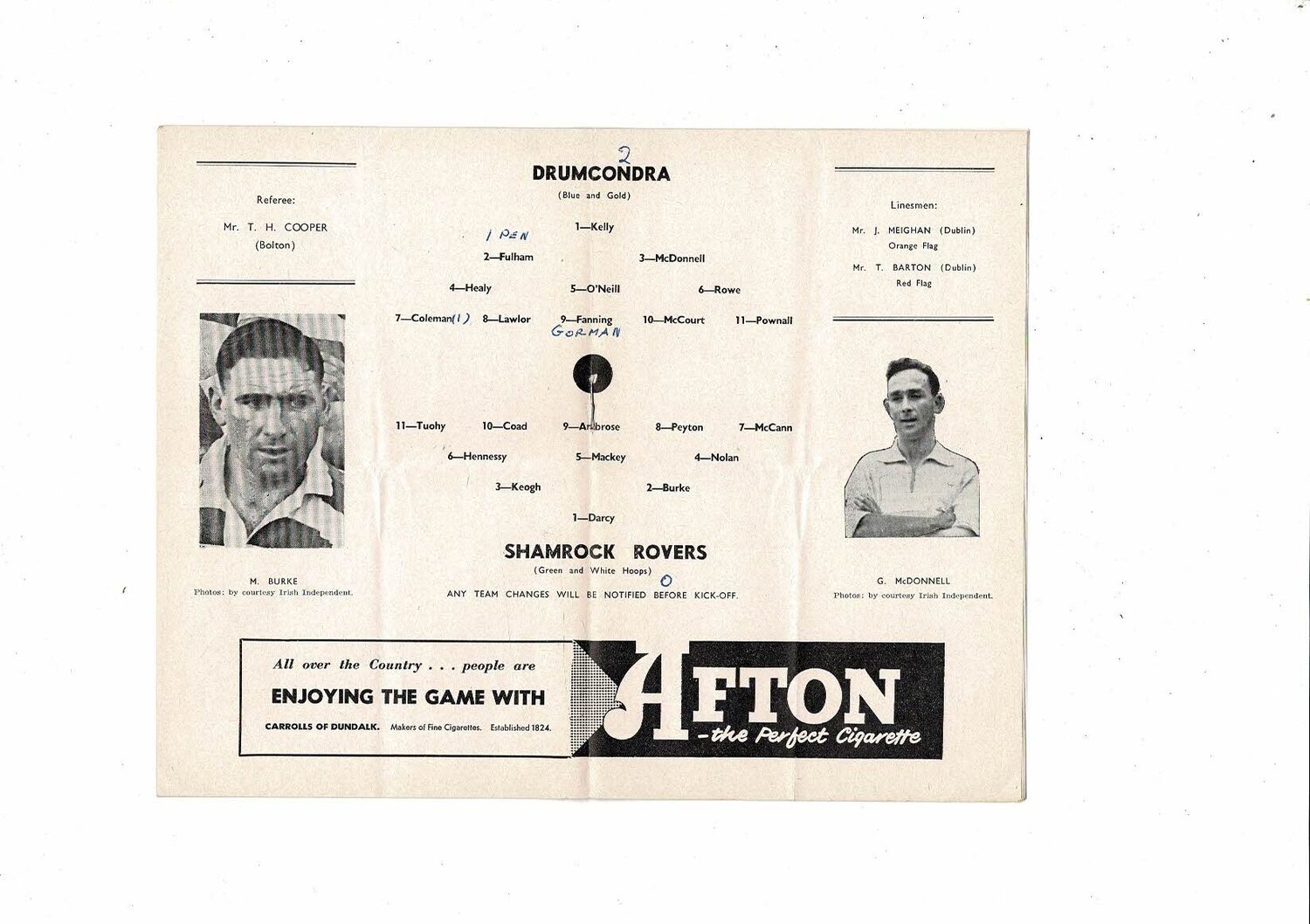 1957 Drumcondra v Shamrock Rovers FAI Cup Final Football Programme