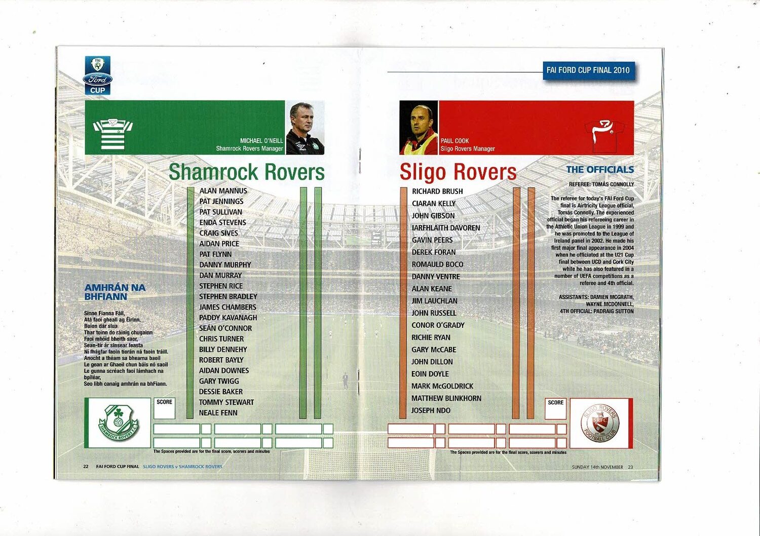 2010 Sligo Rovers v Shamrock Rovers FAI Cup Final Football Programme
