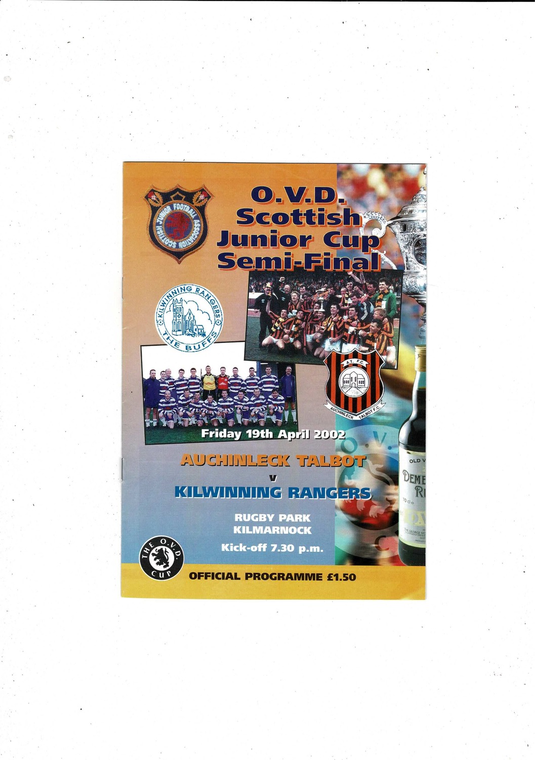 2002 Auchinleck Talbot v Kilwinning Rangers Scottish Junior Cup semi Final Football Programme
