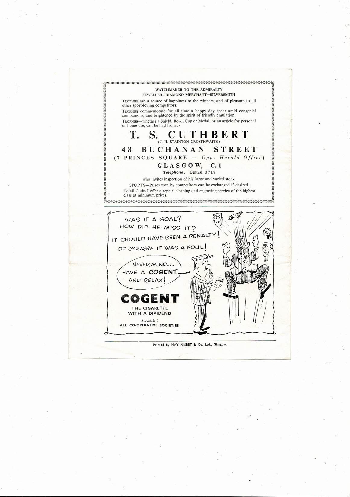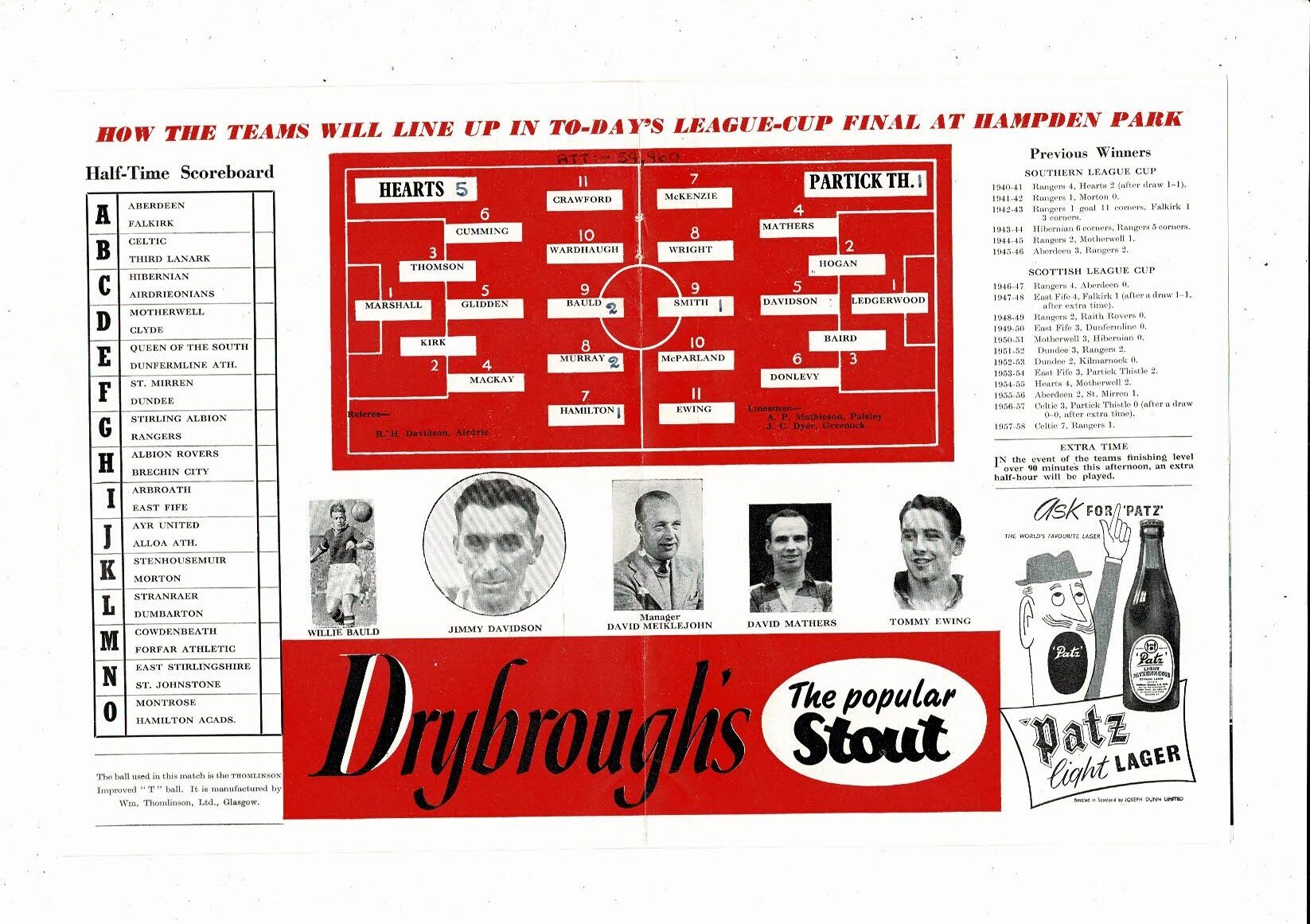 1958 Partick Thistle v Hearts Scottish League Cup Final Football Programme