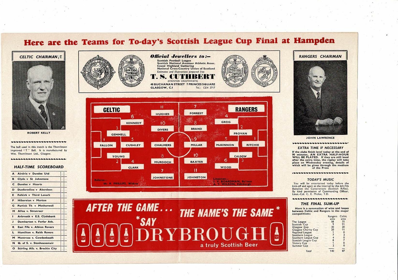 1964 Rangers v Celtic Scottish League Cup Final Football Programme