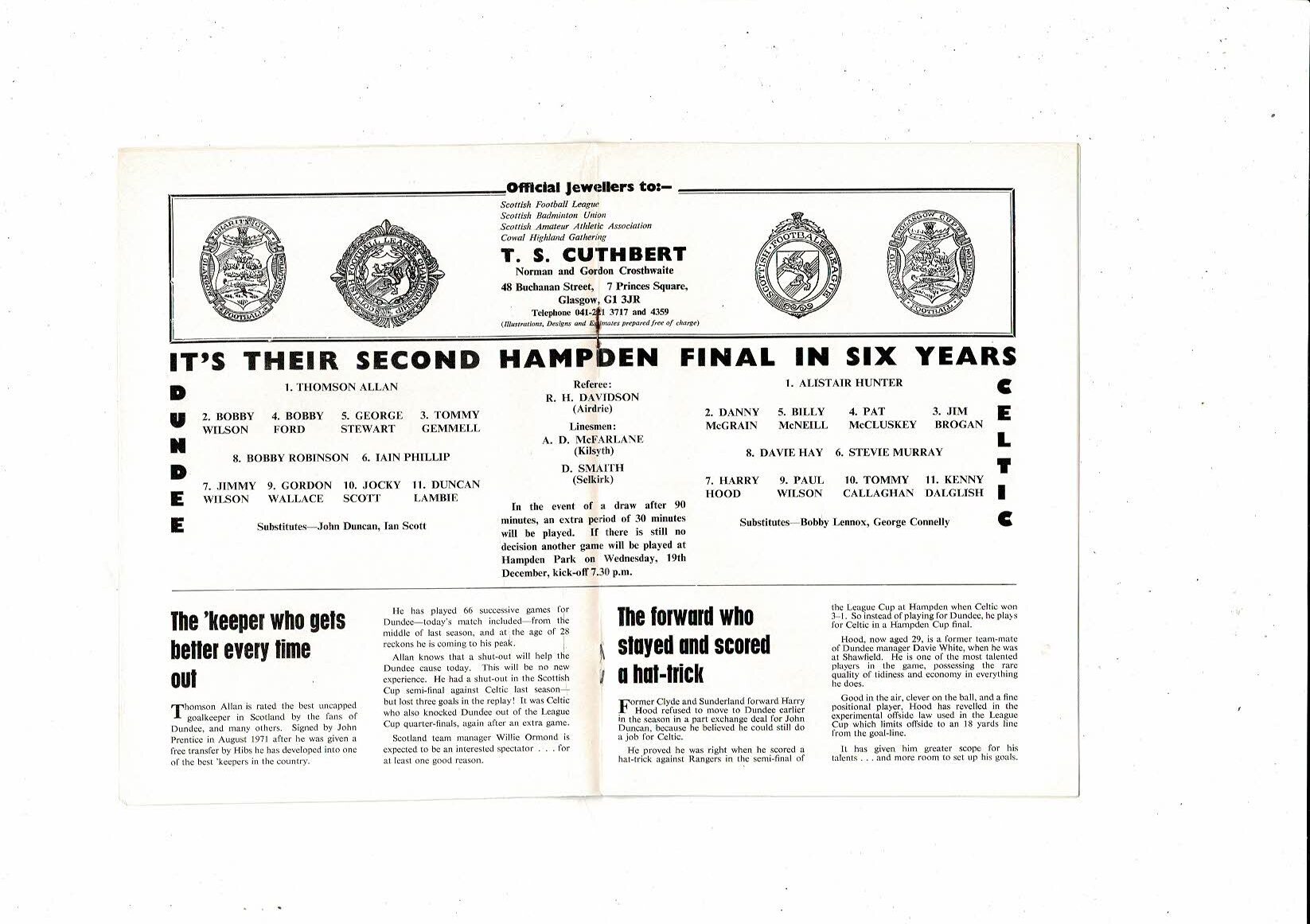 1973 Dundee v Celtic Scottish League Cup Final Football Programme
