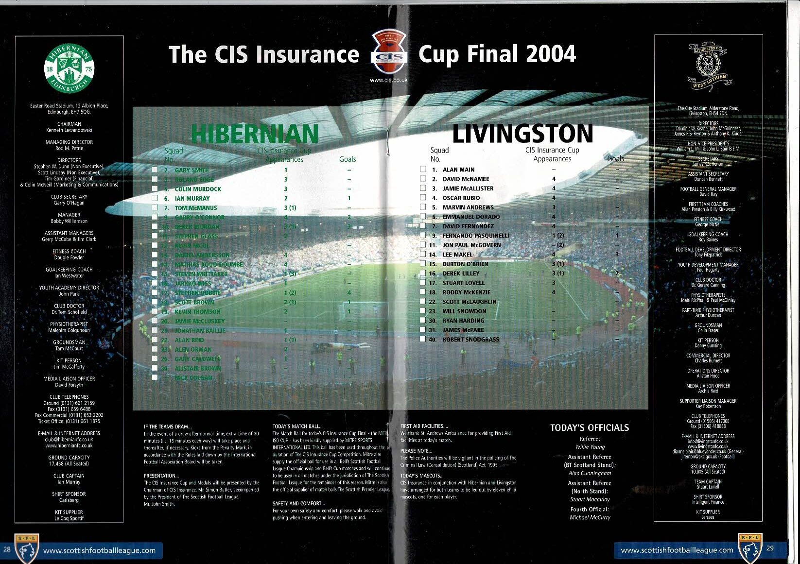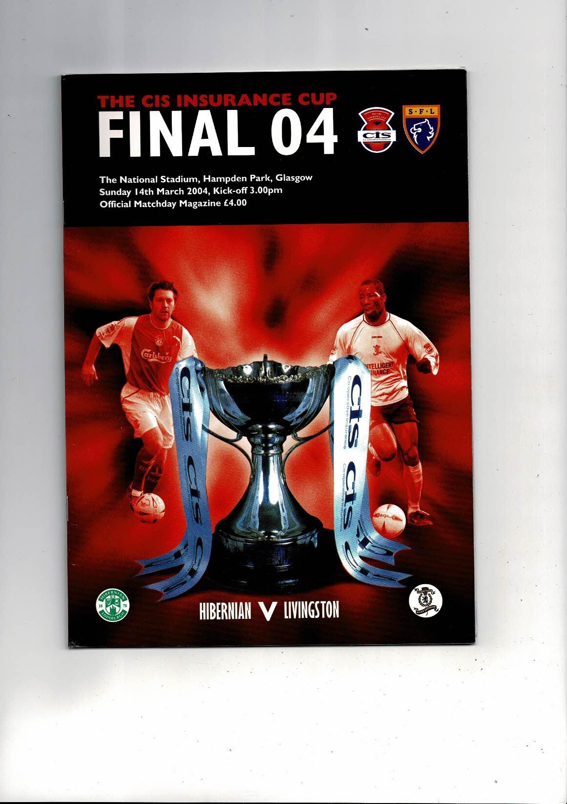 2004 Hibernian v Livingston Scottish League Cup Final Football Programme + Press Cutting