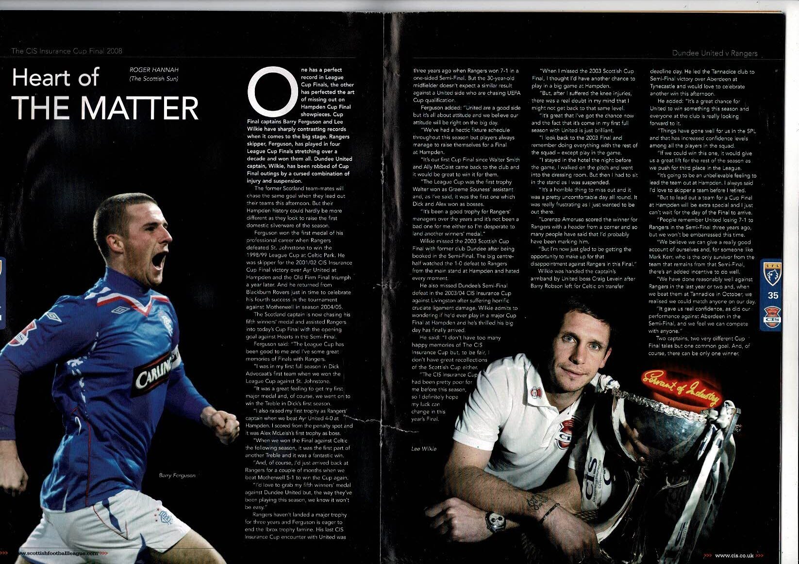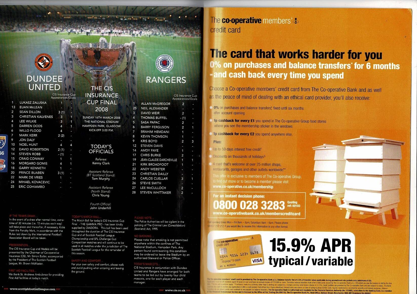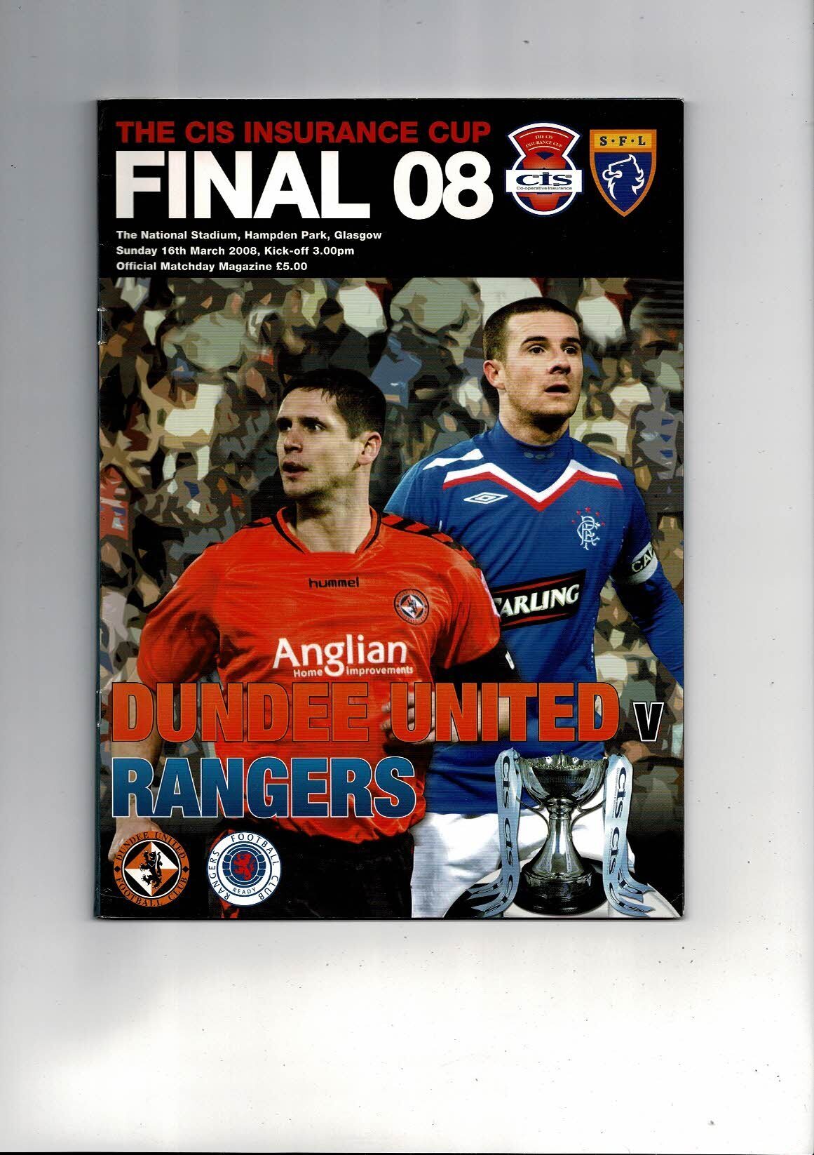 2008 Dundee United v Rangers Scottish League Cup Final Football Programme