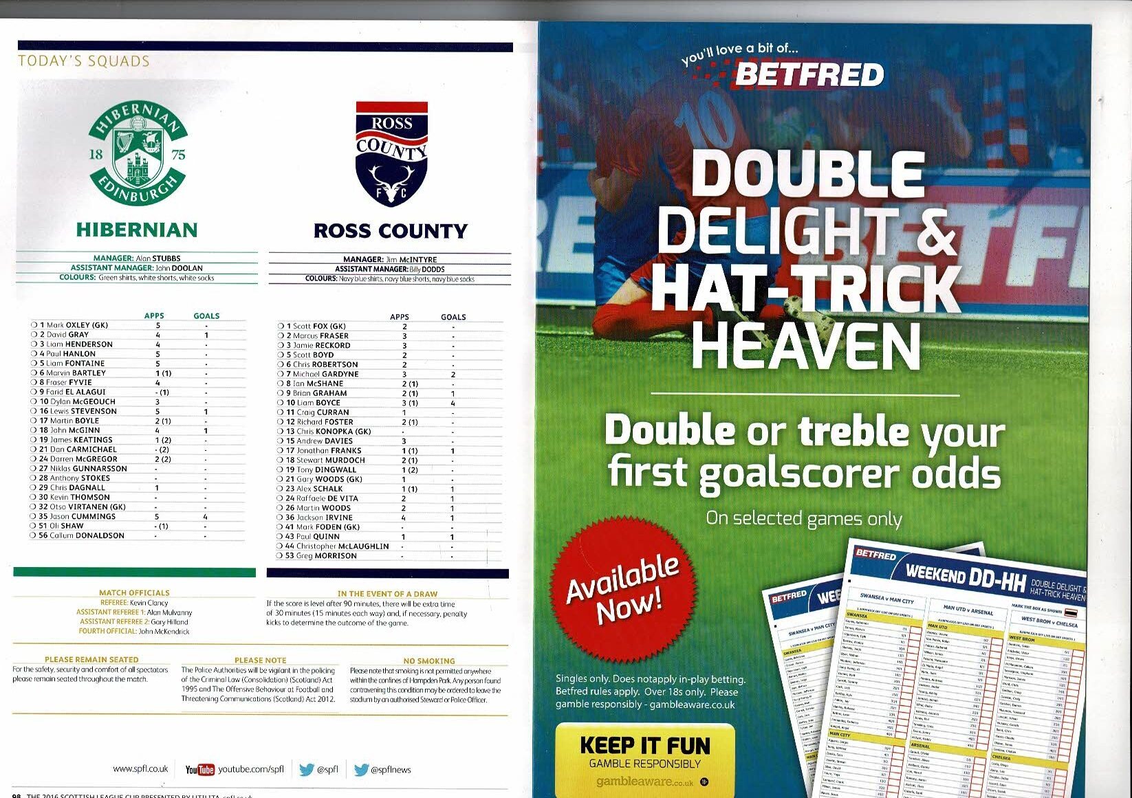 2016 Hibernian v Ross County Scottish League Cup Final Football Programme