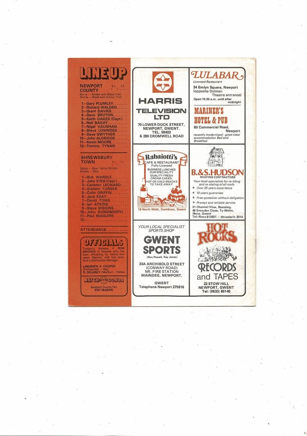 1980 Newport County v Shrewsbury Town Welsh Cup Final Football Programme