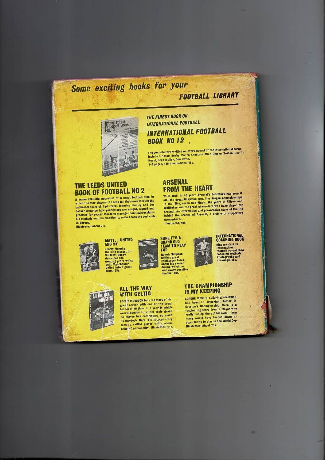 Bobby Charlton's book of European Football No.2 (hardbook) 1970 is creased with some staining. Dust cover is creased, stained, several tears & pieces missing. No handwriting. Please see scan.