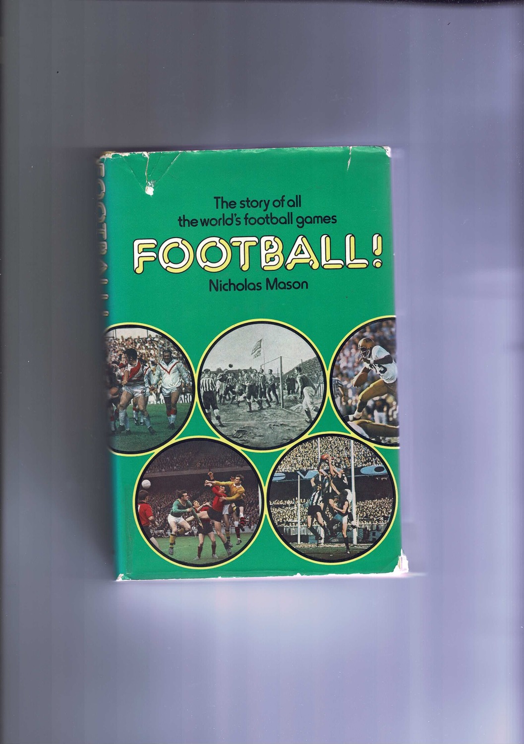Football! by Nicholas Mason (hardback) 1974 (first edition) is slightly creased. Dust cover is creased, creased with several tears and small pieces missing. No handwriting. Please see scan.