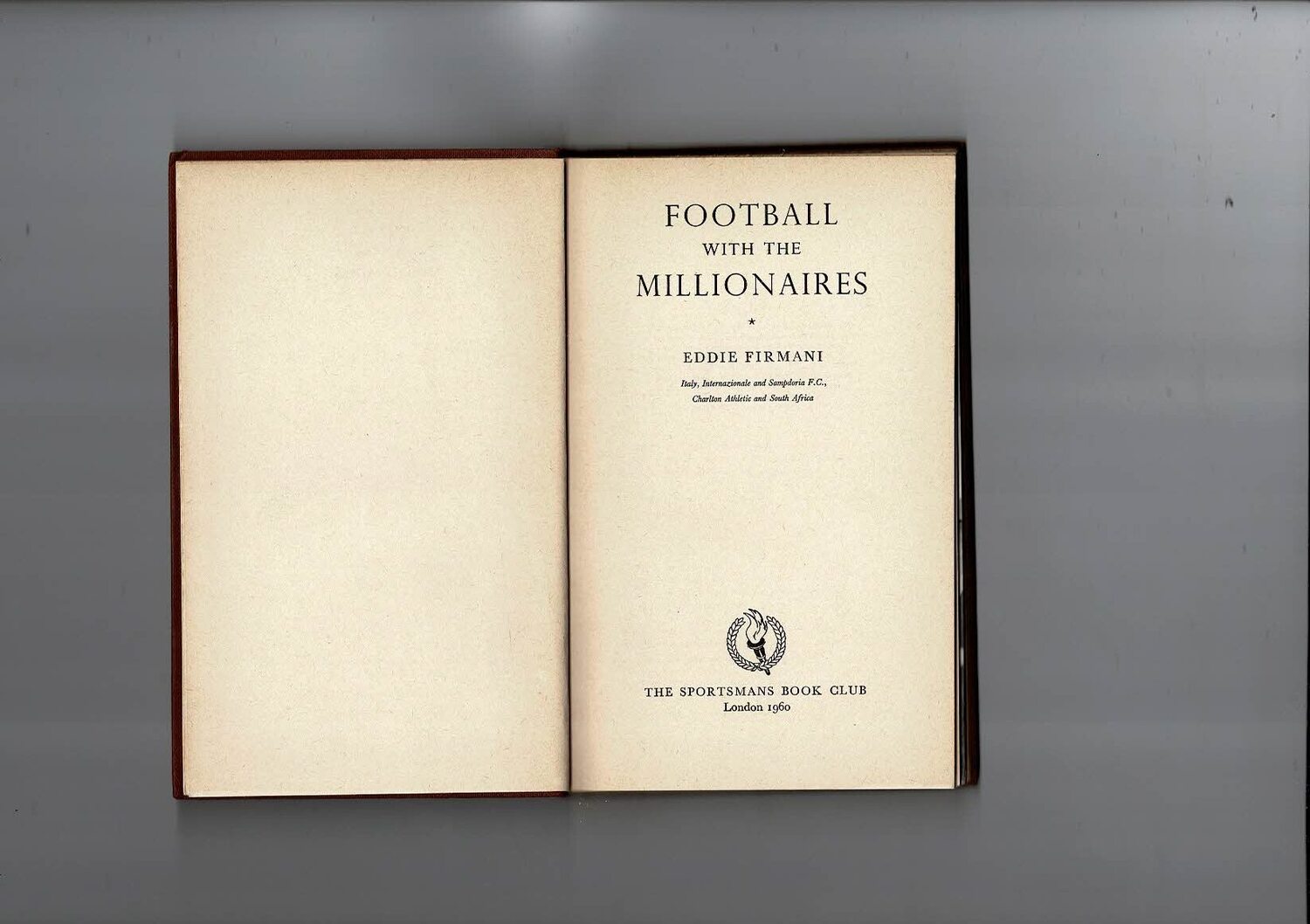 Football with the Millionaires by Eddie Firmani (hardback) 1960 (Sportsmans Bookclub edition) has some creasing & staining. No dust cover. No Handwriting. Please see scan.