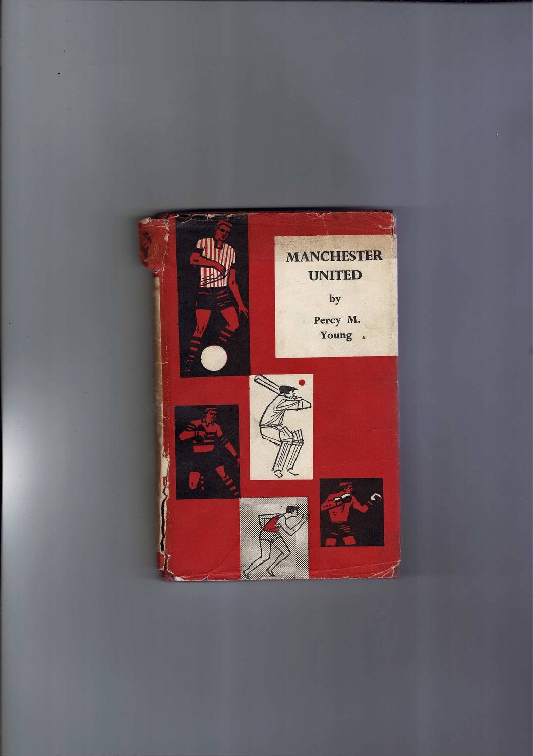 Manchester United by Percy M Young (hardback) 1962 (Sportsmans Bookclub edition) is slightly creased with some staining. Dust cover creased, stained, several tears & small pieces missing. No Handwriting. Please see scan.