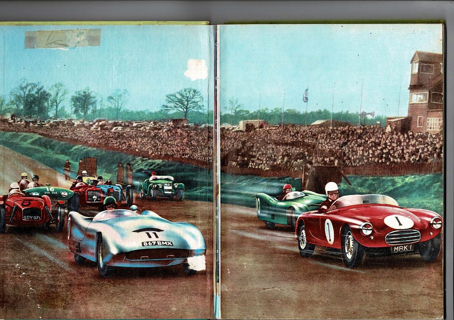 This hardback book is stained & creased, scuffed with damage to both ends of spine, marked & tape on inside of both covers.