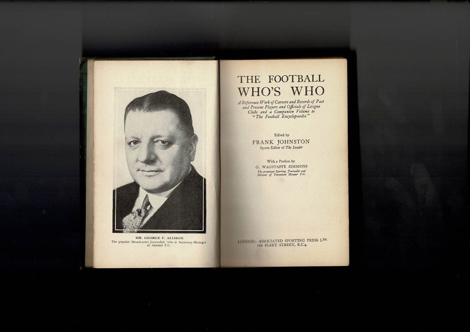 The football Who's Who by Frank Johnstone (hardback book) 1935
