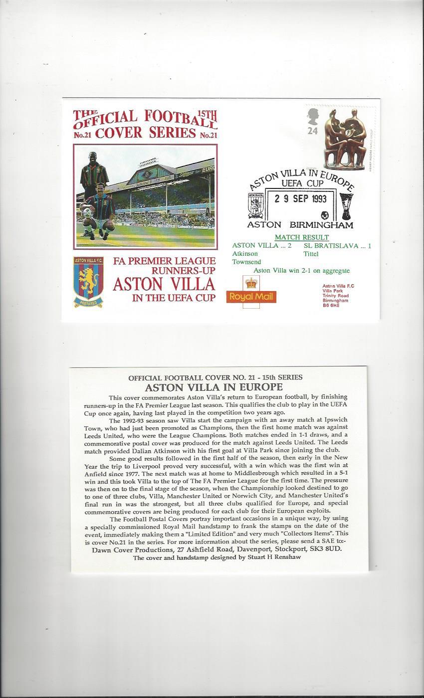 Aston Villa v Bratislava UEFA Cup Football Postal Cover + Insert 1993