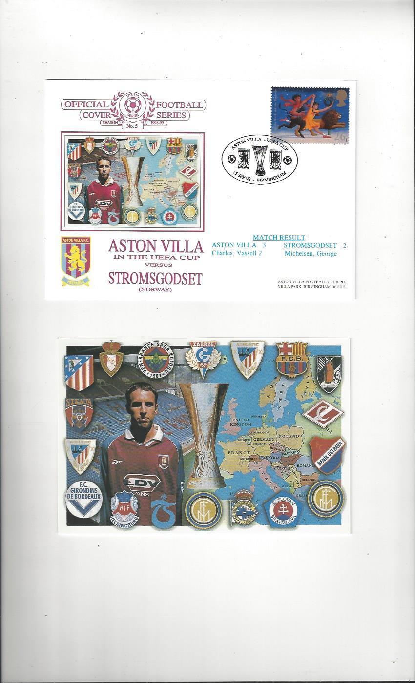 Aston Villa v Stromsgodset Football First Day Cover + Insert 1998