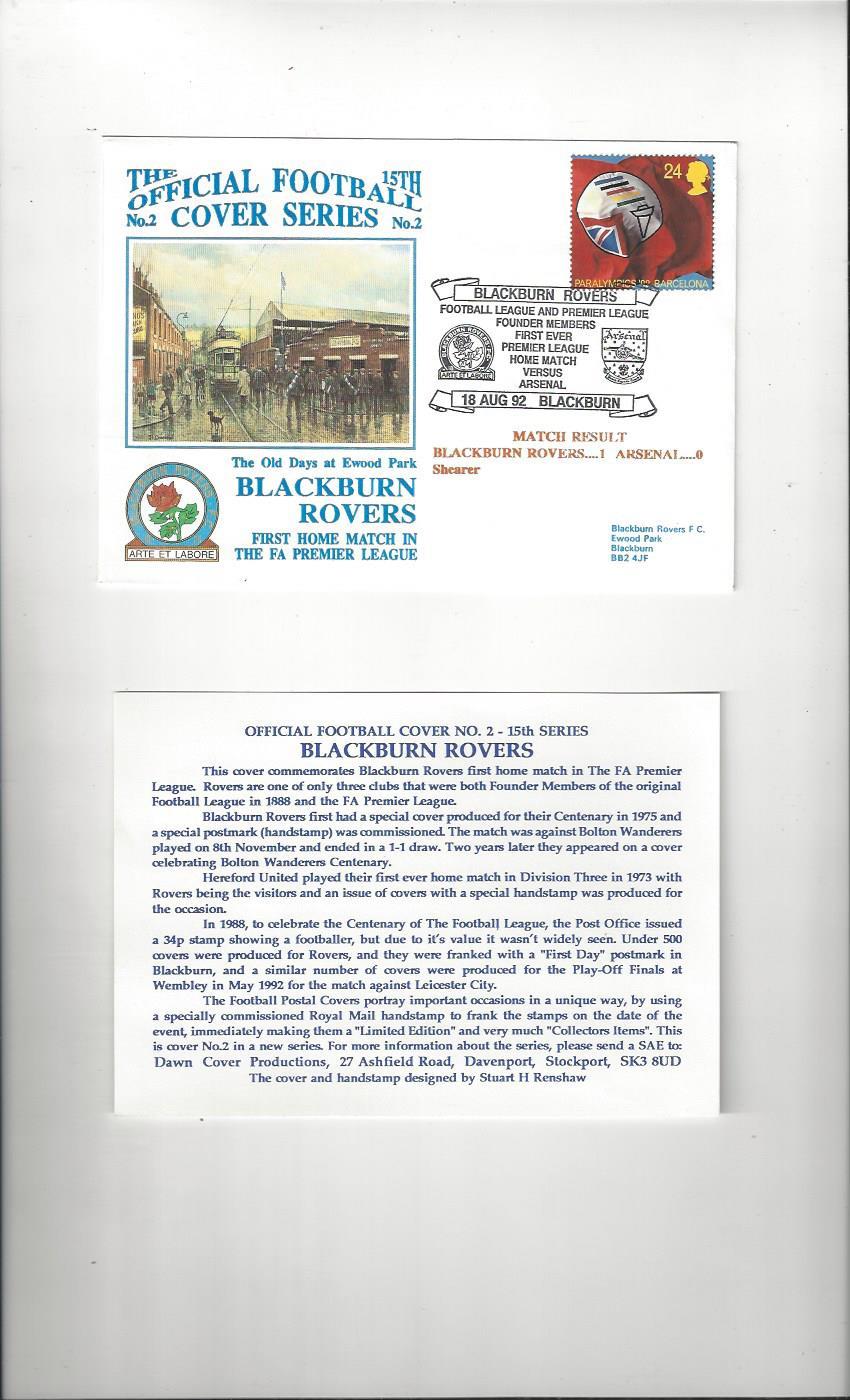 Blackburn Rovers v Arsenal Football First Day Cover + Insert 1992