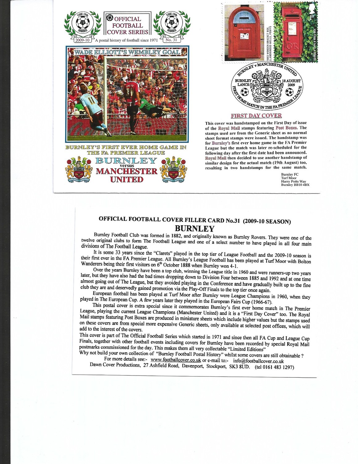 Burnley v Manchester United Football First Day Cover + Insert 2009