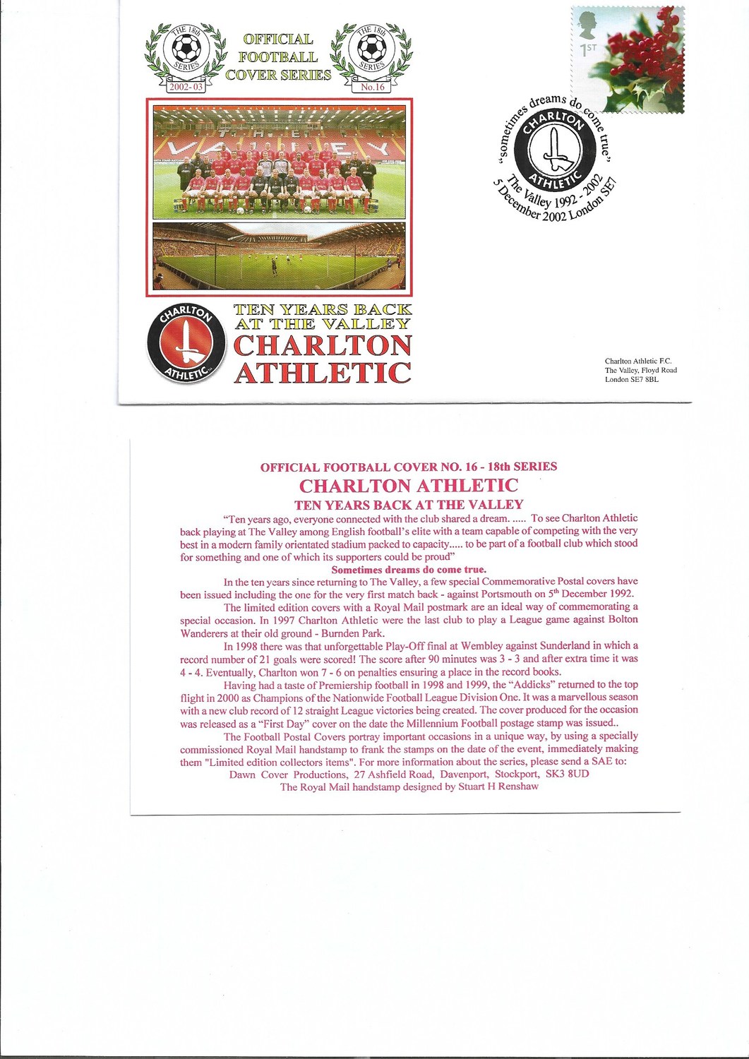 Charlton Athletic Football First Day Cover + Ten Years back at The Valley 2002