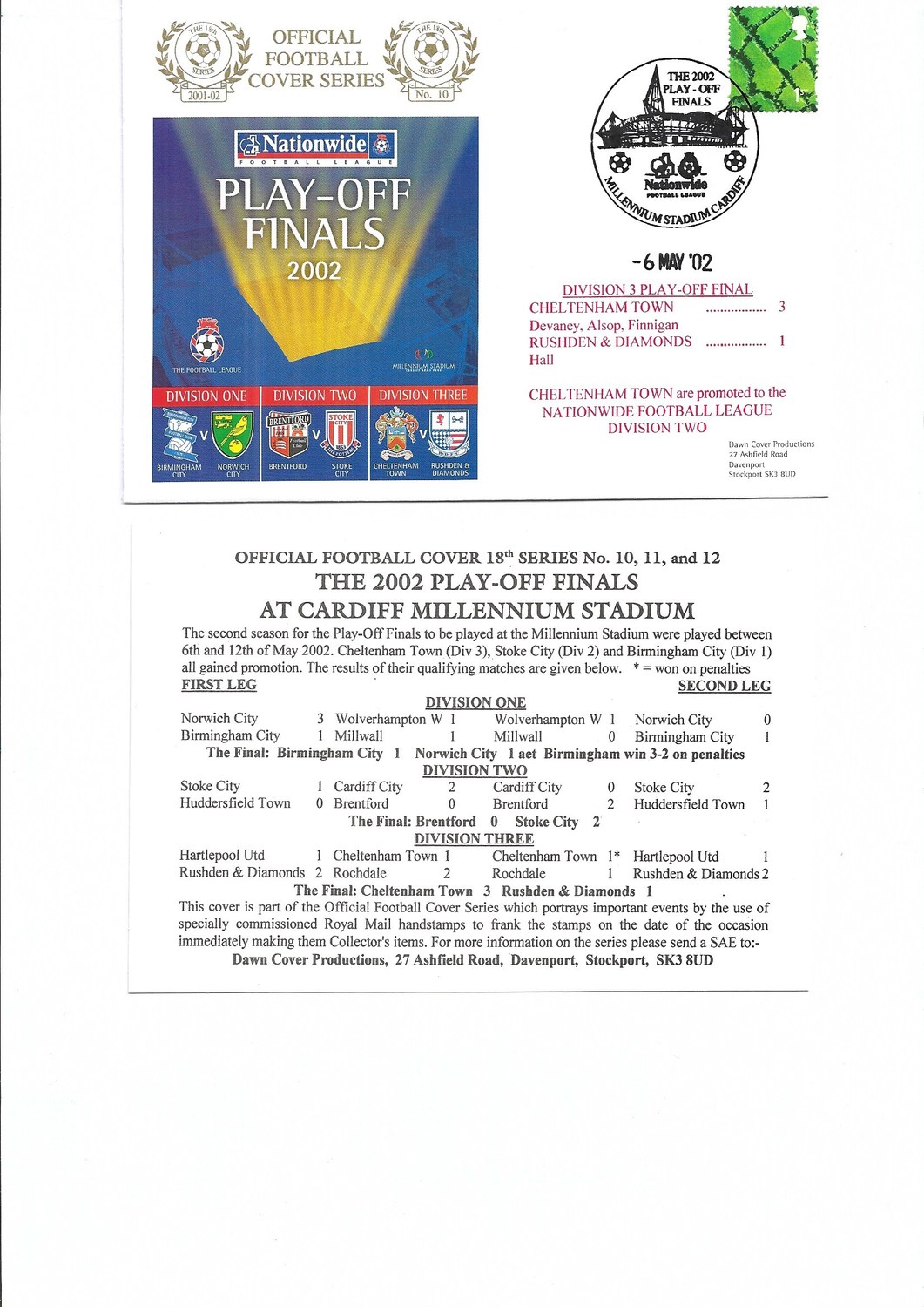 Cheltenham Town v Rushden & Diamonds Football First Day Cover + Insert Division Three Play Off Final 2002
