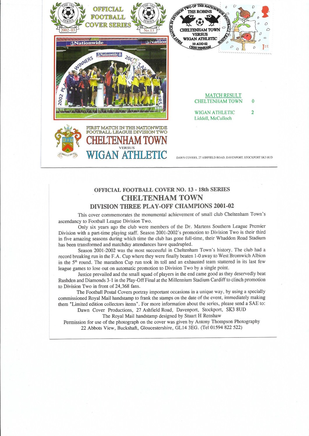 Cheltenham Town v Wigan Athletic Football First Day Cover + Insert 2002