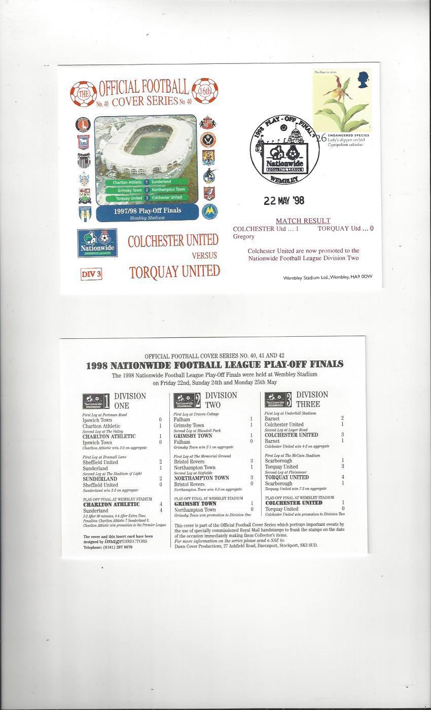 Colchester United v Torquay United Play Off Final Football First Day Cover + Insert 1998