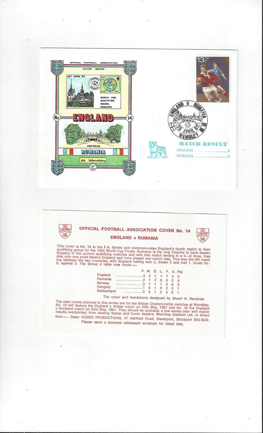 This Original Commemorative Football First Day Cover with card insert is in very good condition. No writing. Romania is spelt Rumania on cover.