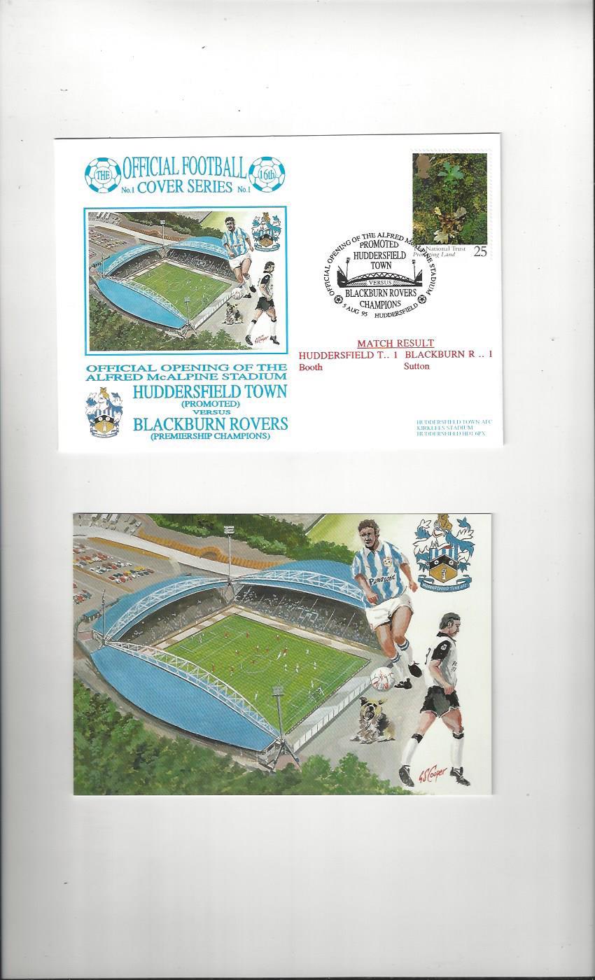 Huddersfield Town v Blackburn Rovers Football Postal Cover + Post Card 1995