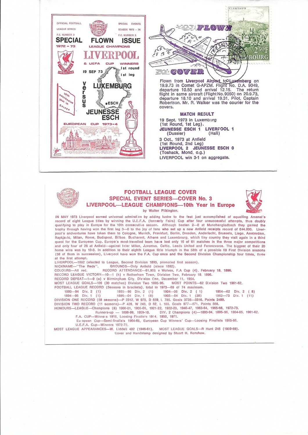 Jeunesse Esch v Liverpool Football First Day Cover + Insert European Cup 1973