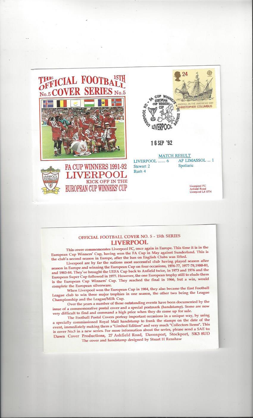 Liverpool v AP Limassol Football First Day Cover + Insert 1992