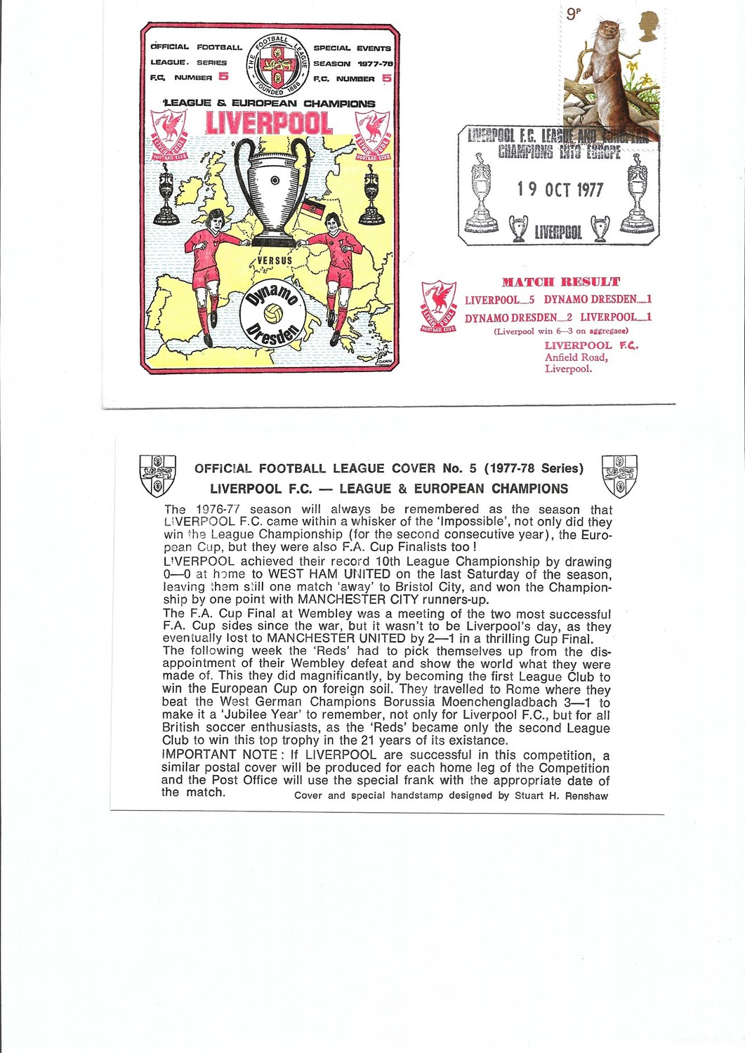 Liverpool v Dynamo Dresden Football First Day Cover + Insert European Cup 1977