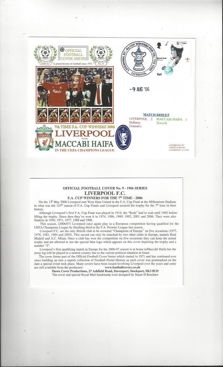 Liverpool v Maccabi Haifi Football First Day Cover + Insert UEFA Champions League 2006