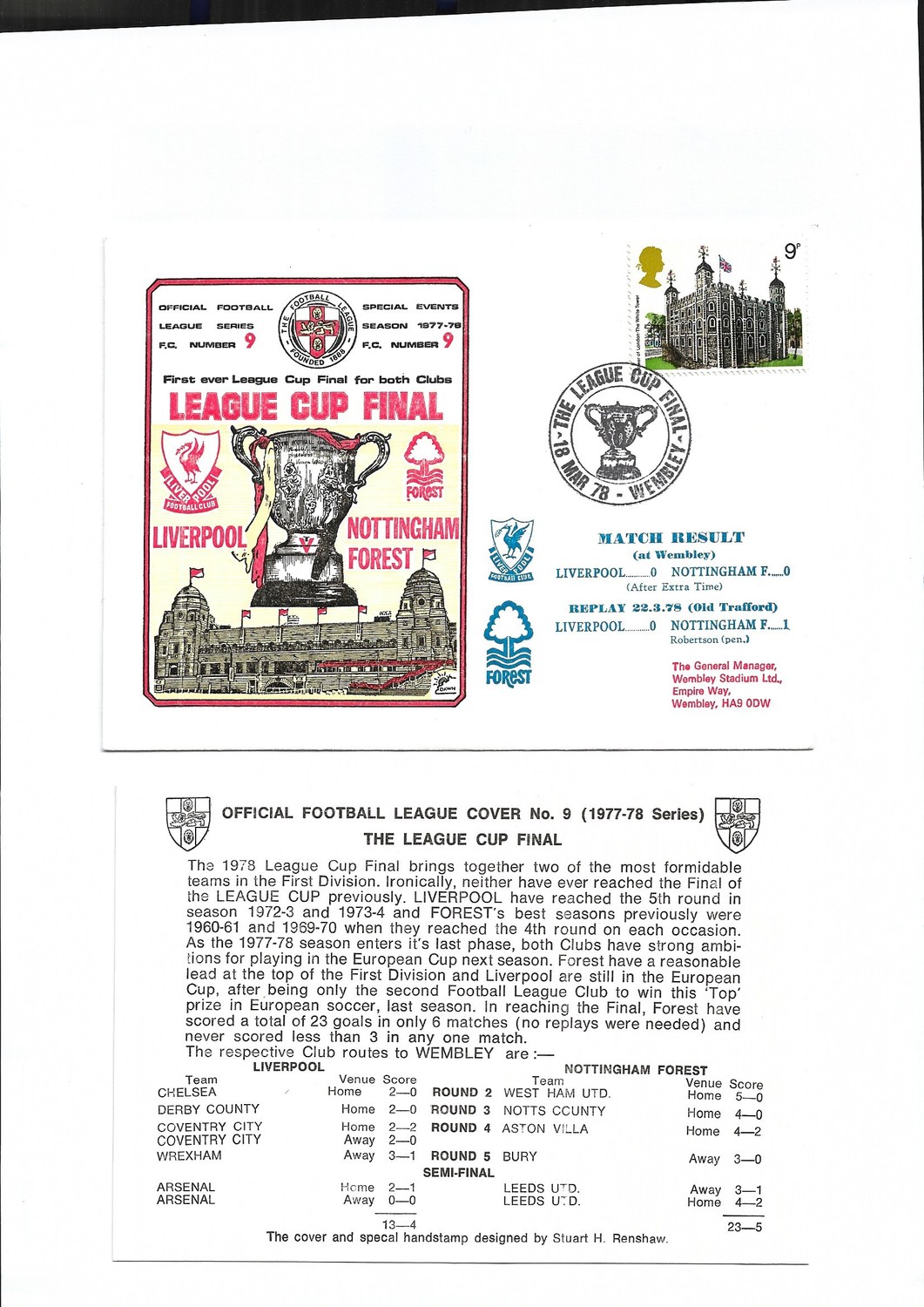 Liverpool v Nottingham Forest Football First Day Cover + Insert League Cup Final 1978