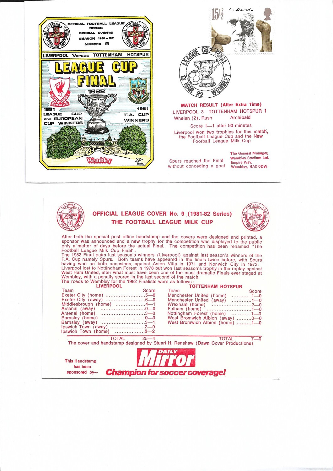 Liverpool v Tottenham Hotspur Football First Day Cover + Insert League Cup Final 1982