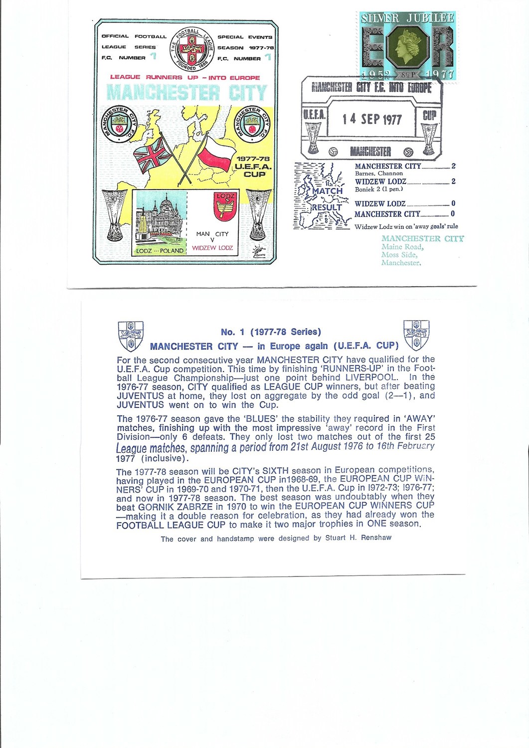 Manchester City v Widzew Lodz Football First Day Cover + Insert UEFA Cup 1977