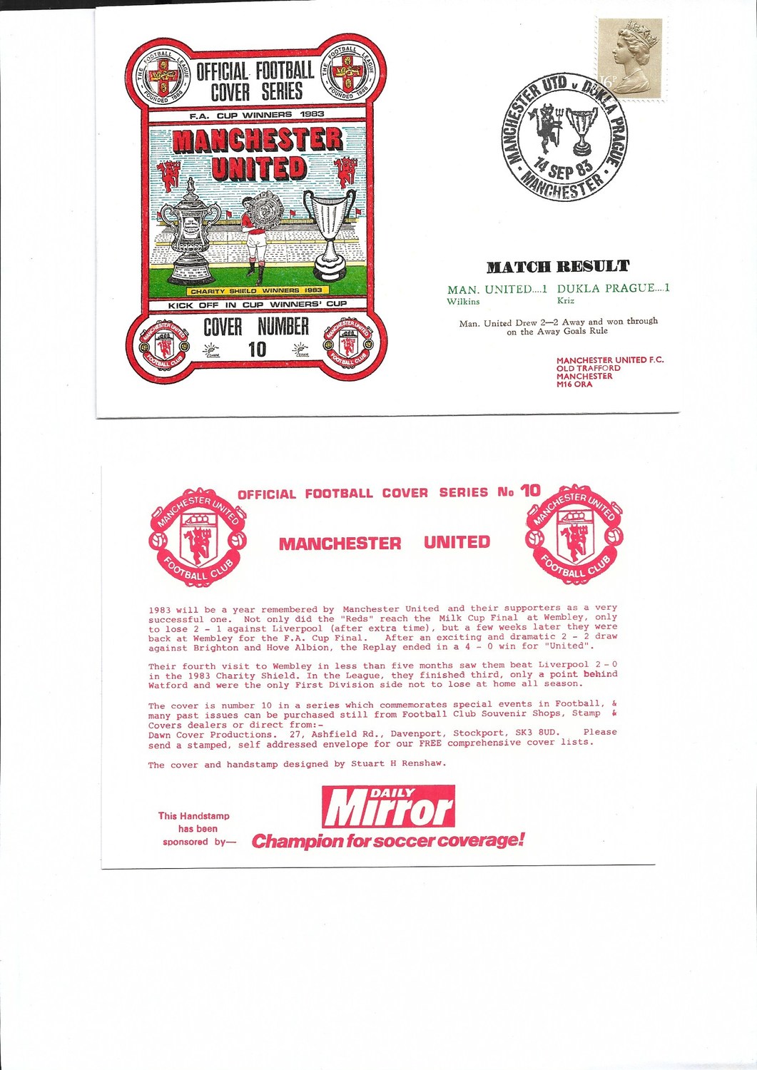 Manchester United v Dukla Prague Football First Day Cover + Insert European Cup Winners Cup 1983