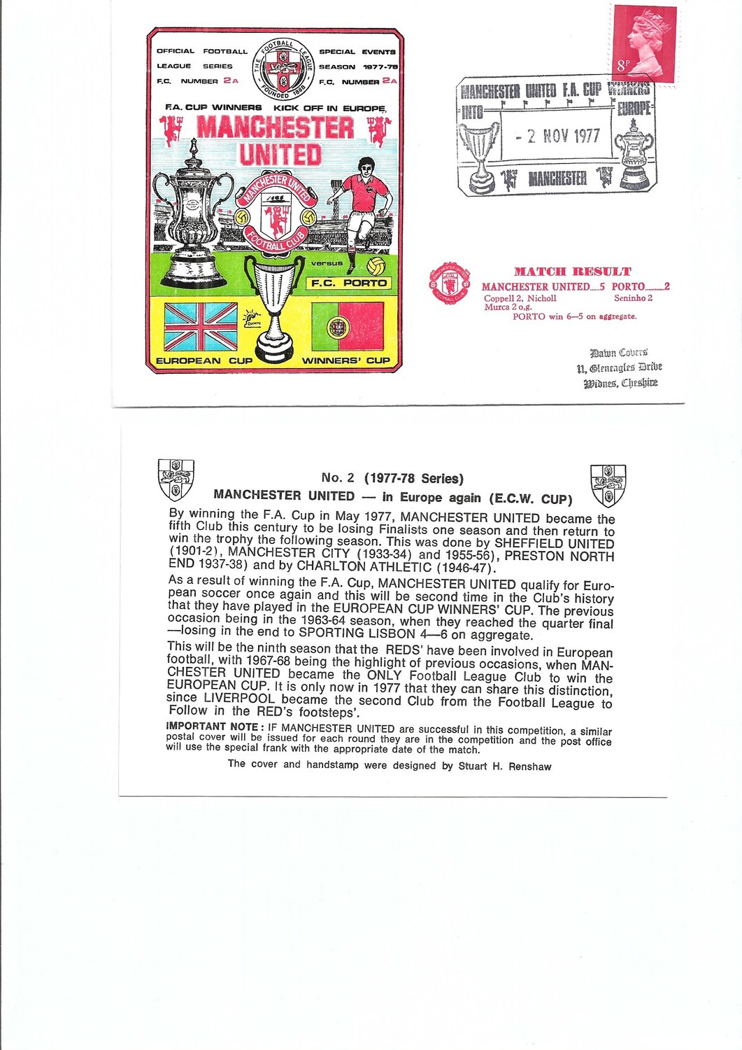 Manchester United v F.C Porto Football First Day Cover + Insert European Cup Winners Cup 1977