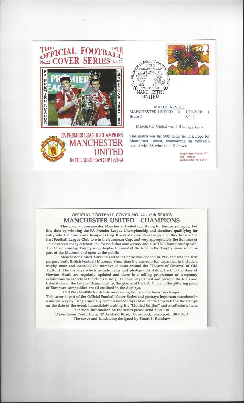 Manchester United v Honved European Cup Football Postal Cover + Insert 1993