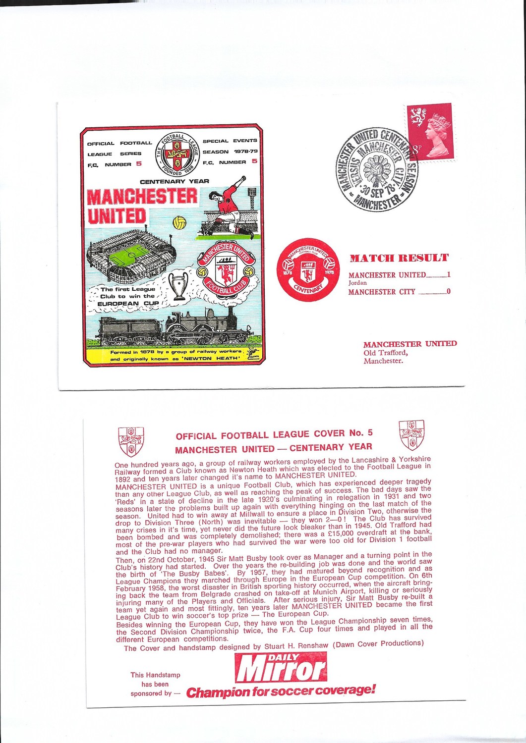 Manchester United v Manchester City Football First Day Cover + Insert Centenary year 1978