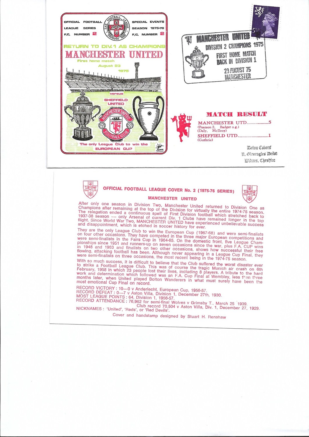 Manchester United v Sheffield United Football First Day Cover + Insert 1975