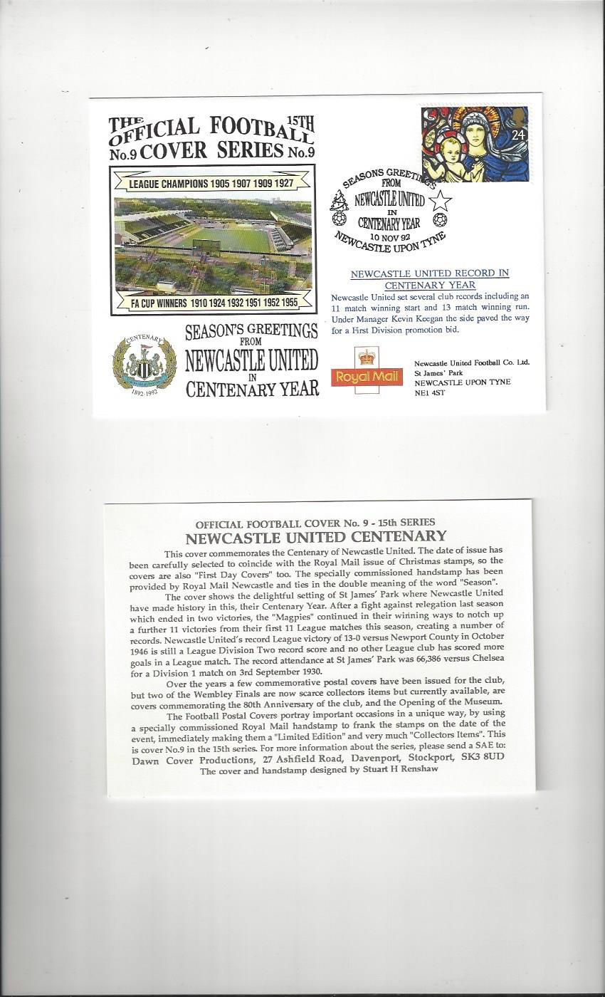 Newcastle United Centenary Year Football Postal Cover + Insert 1992