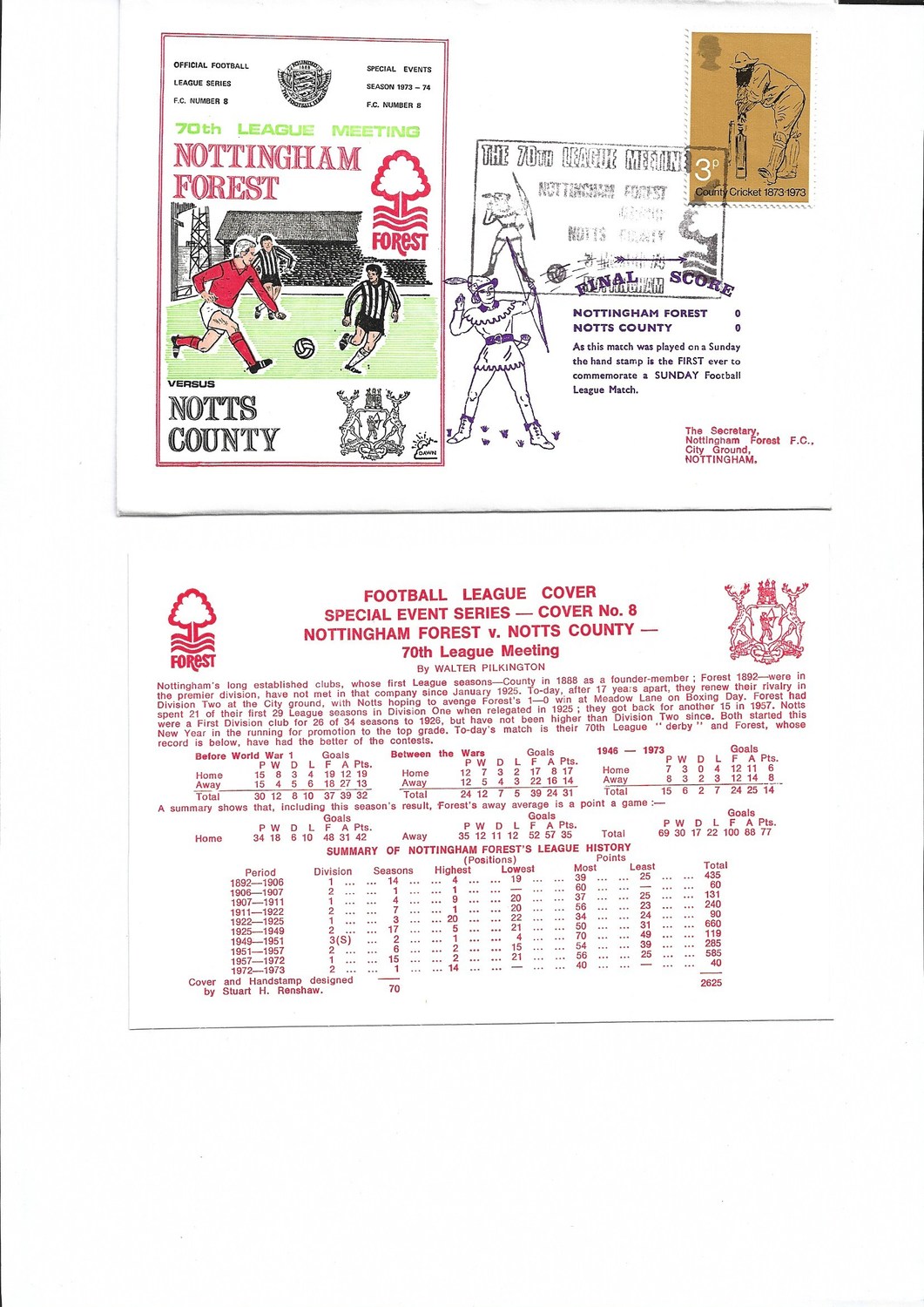 Nottingham Forest v Notts County Football First Day Cover + Insert 1973