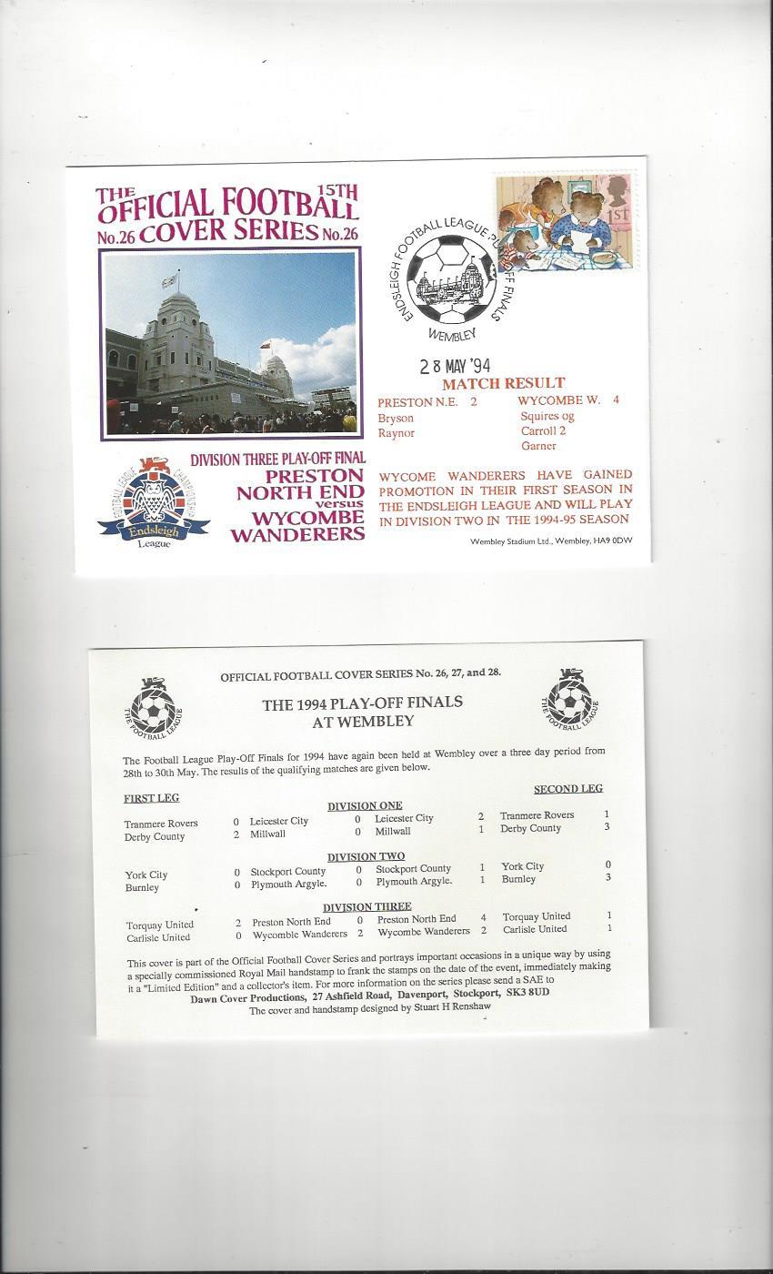 Preston v Wycombe Wanderers Play Off Final Football Postal Cover + insert 1994