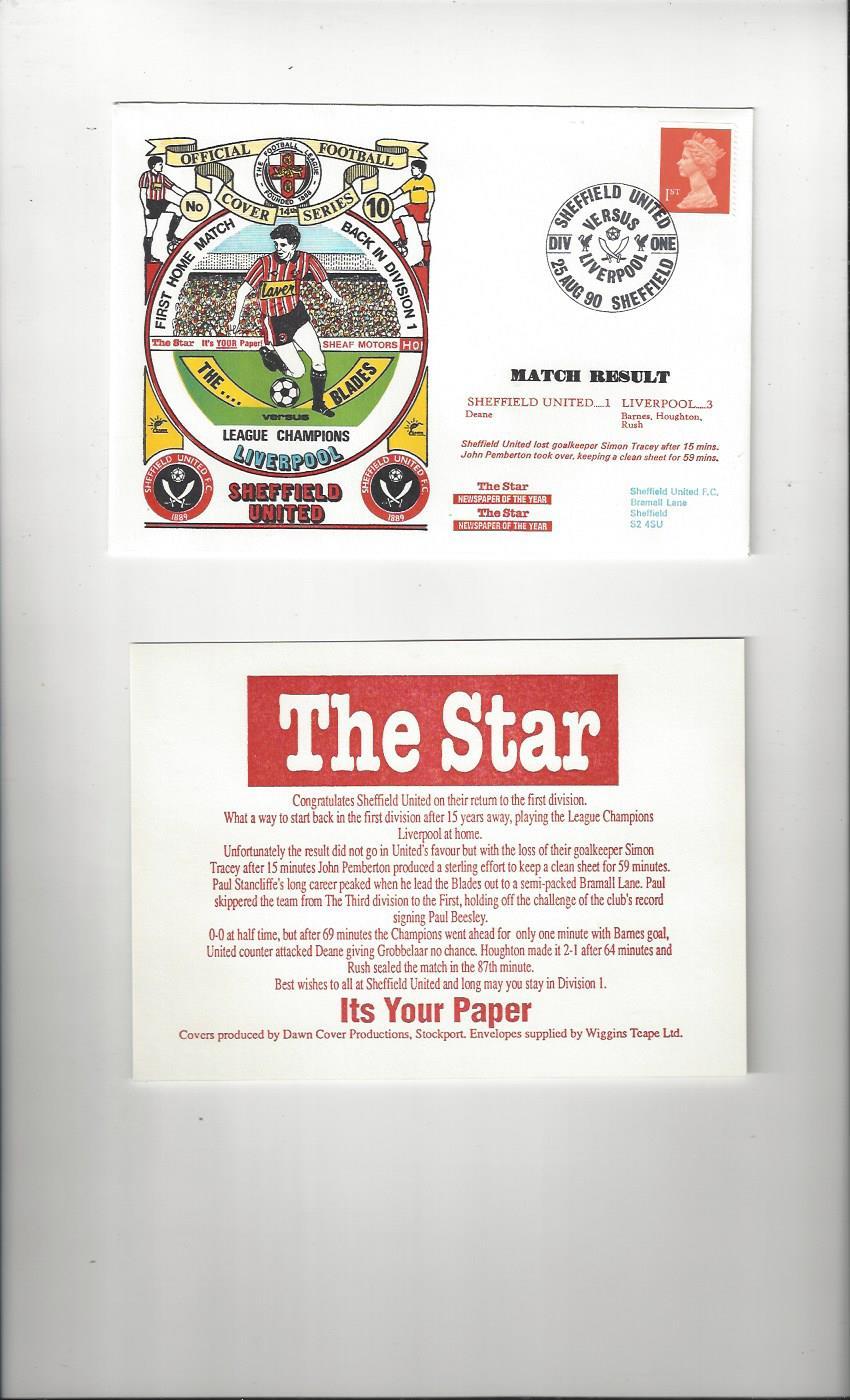 Sheffield United v Liverpool Football First Day Cover + Insert 1990